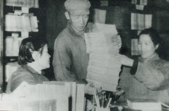这是艺专图书馆工作人员在聚精会神地整理图书。