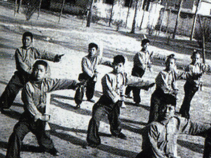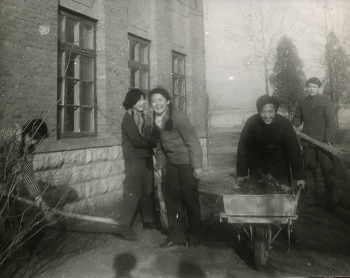 在操场上练功(60级戏曲专业的女生、吕剧专业男生)。